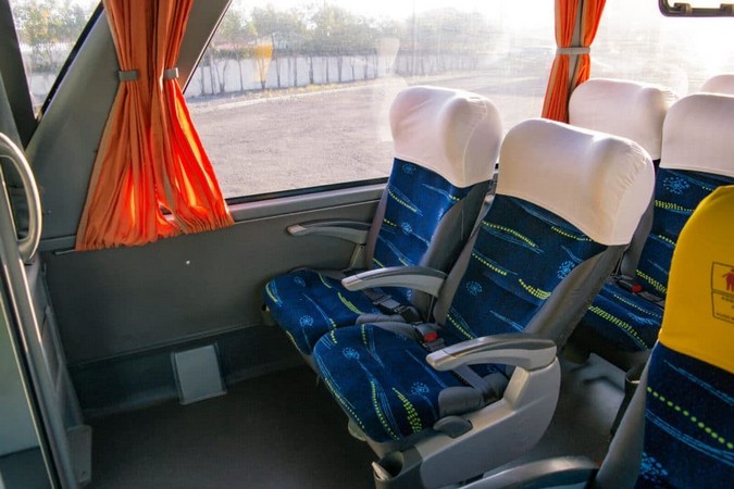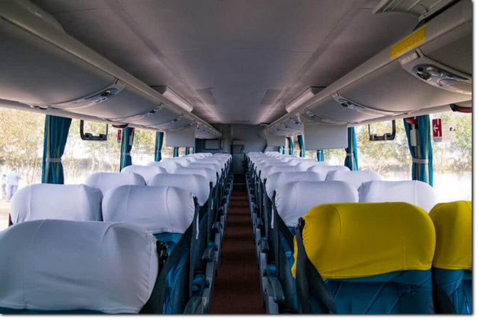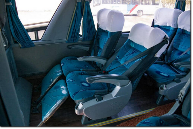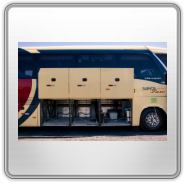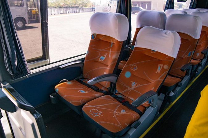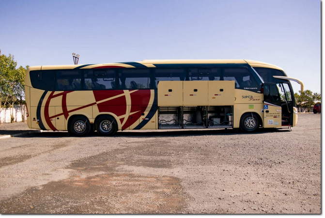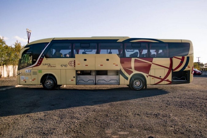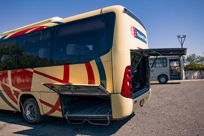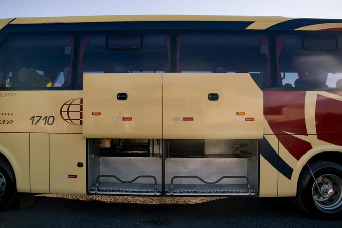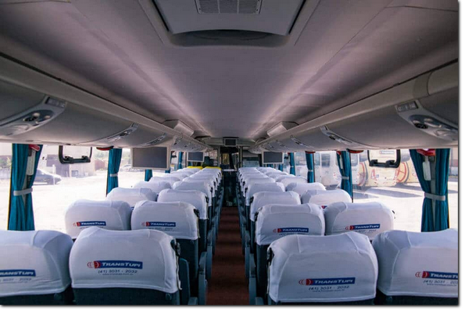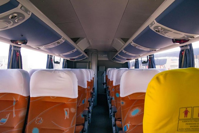 Veículos de 41 ou 42 lugares (variando de acordo com o roteiro), com Monitor de TV, DVD, Radio com CD, Microfone, Frigobar, Ar condicionado e Toalete.
